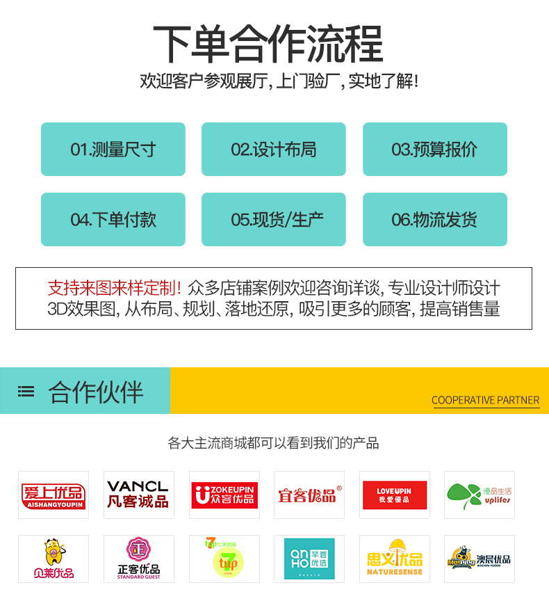 自有強大施工隊伍,提供現場專業安裝,有紀律、有標準的現場施工,直到客戶100%滿意,常規庫存產品24小時內發貨,整店定制產品5-15日交貨
